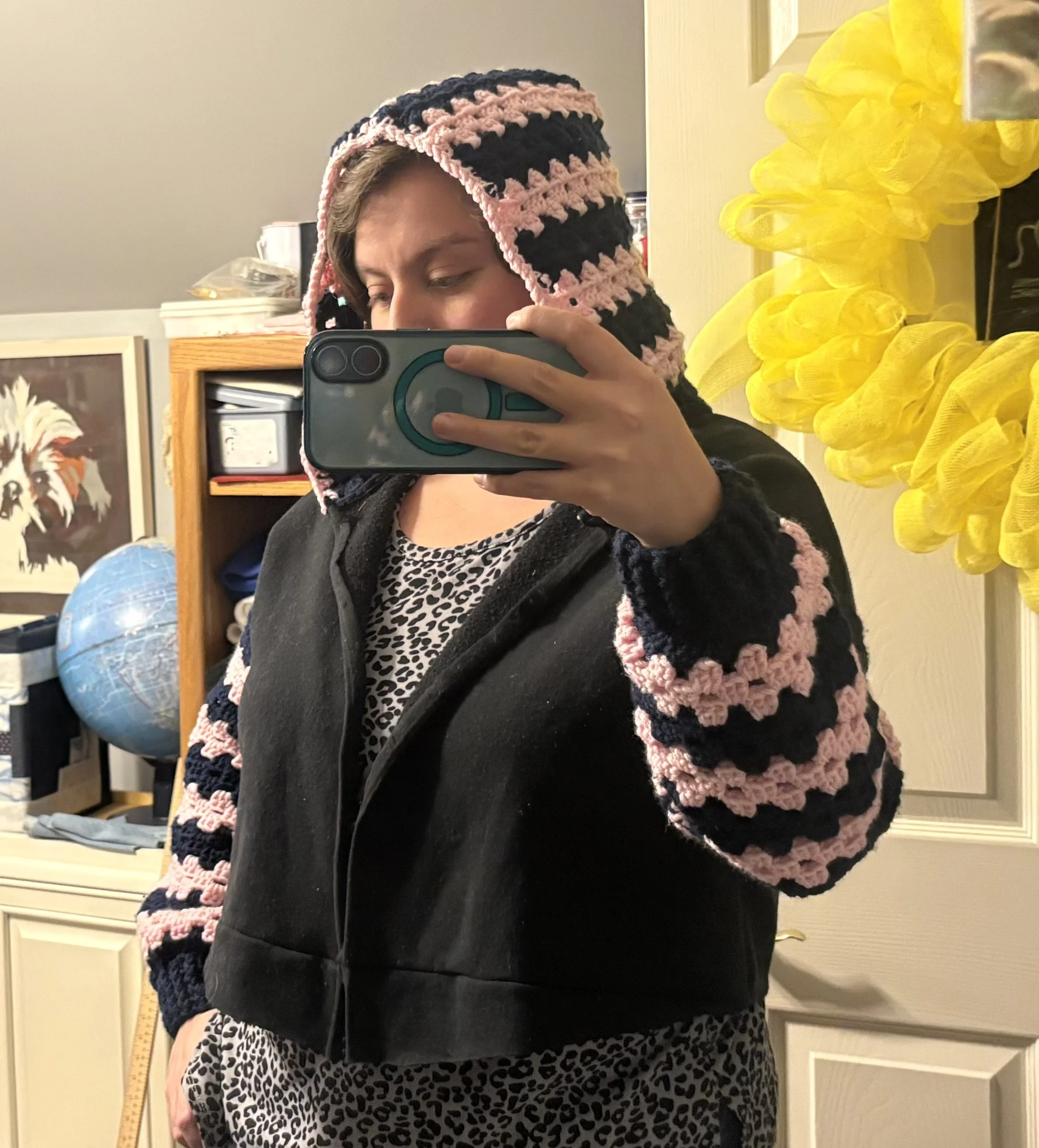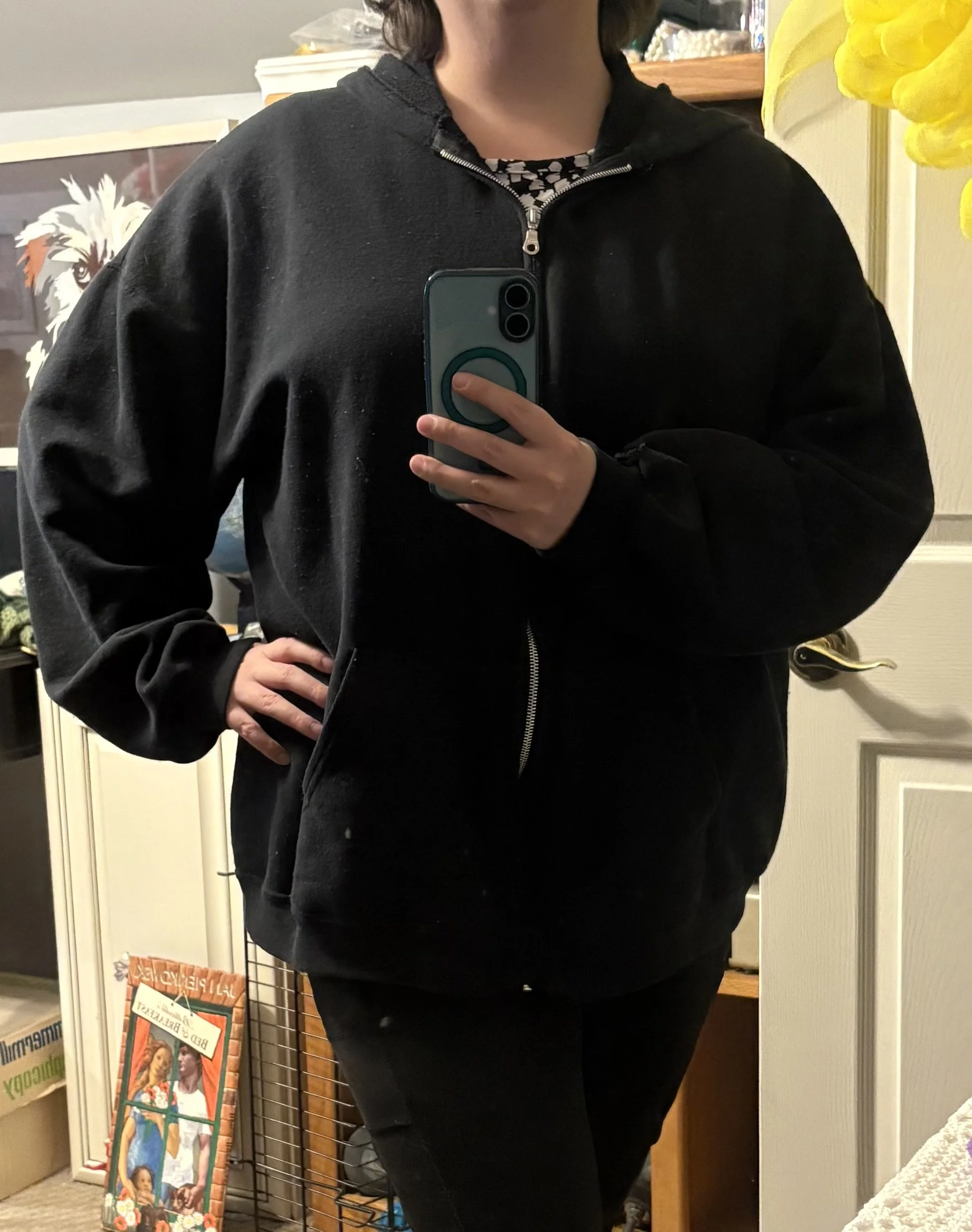 Slimming a hoodie like this won’t be a problem at all since it’s made with a very simple pattern of just two seams - although, those seams are on the shoulders so I will have to make new seams on the side.