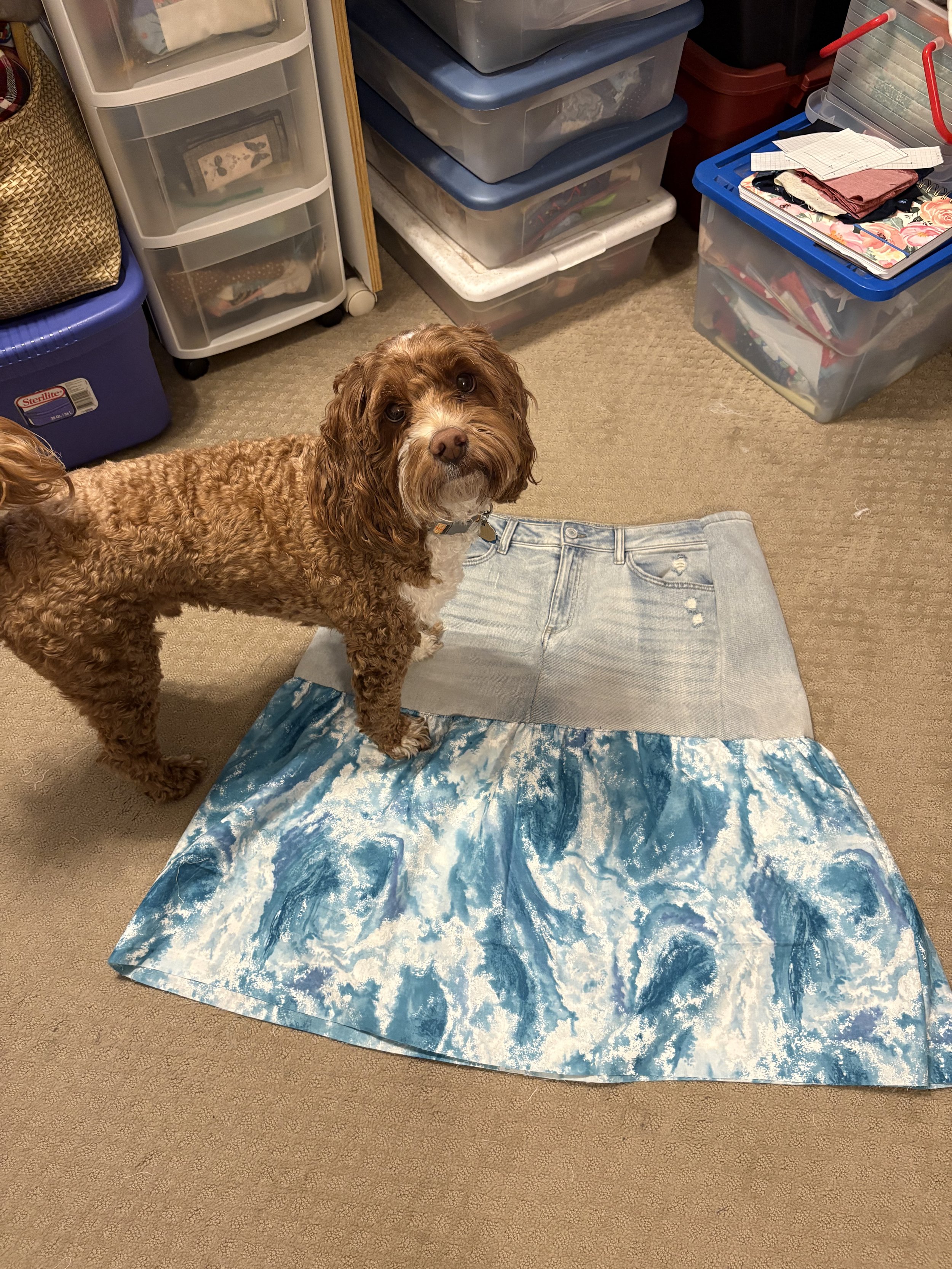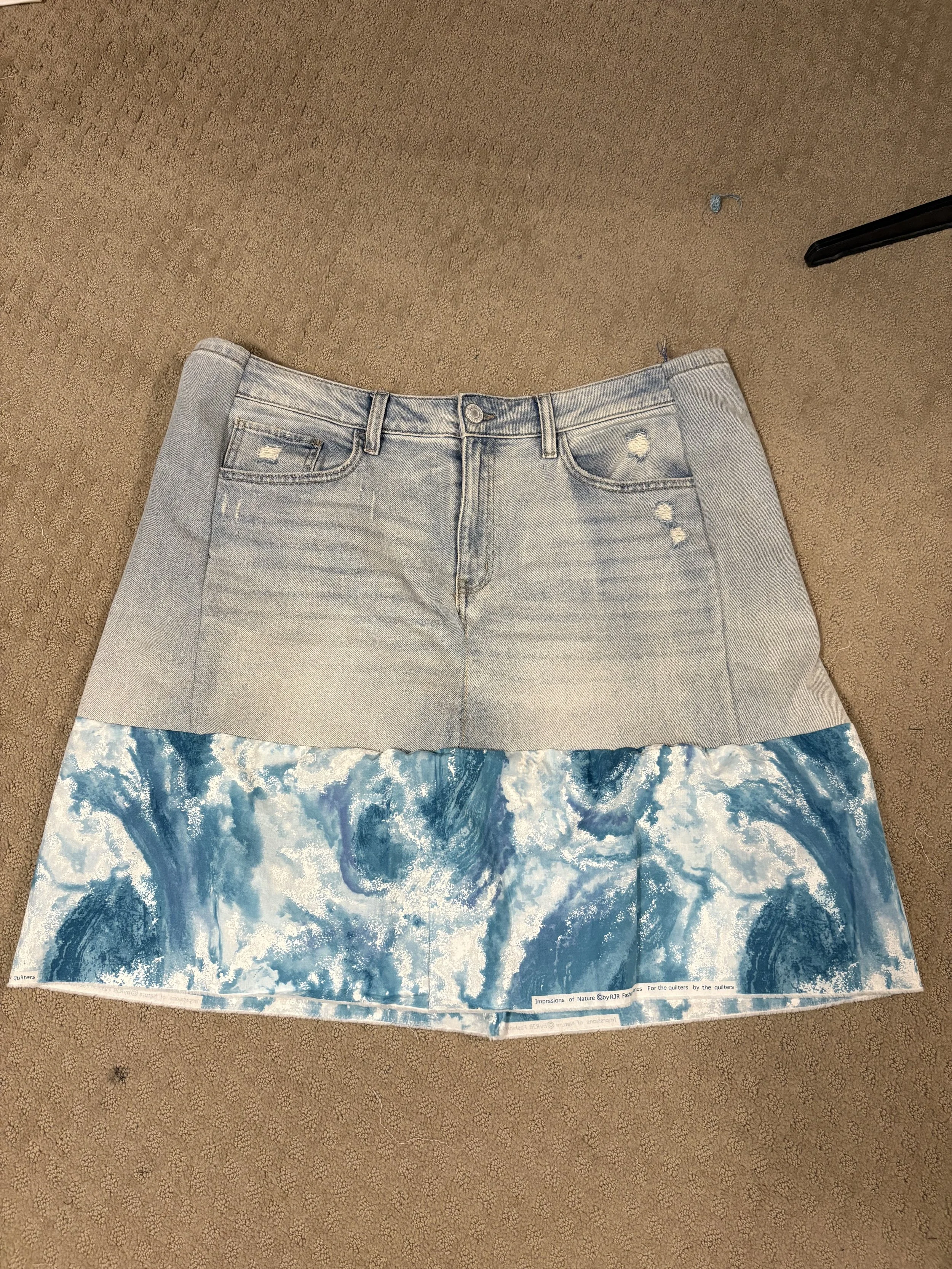 After I was done “zuzing” it and finally decided on what I thought would look nice on me, I went ahead and attached the print to the denim bottoms to create the rest of the skirt;