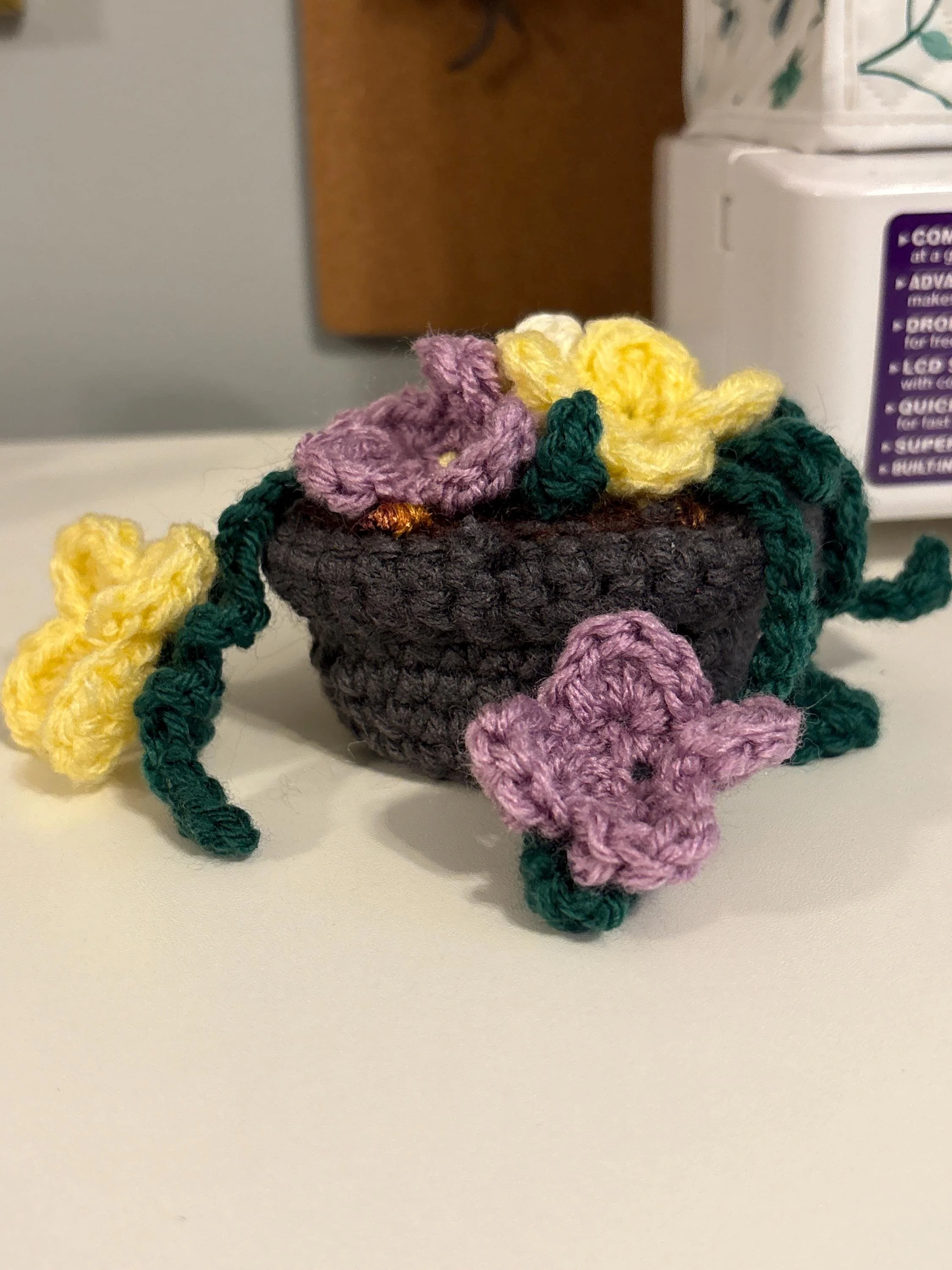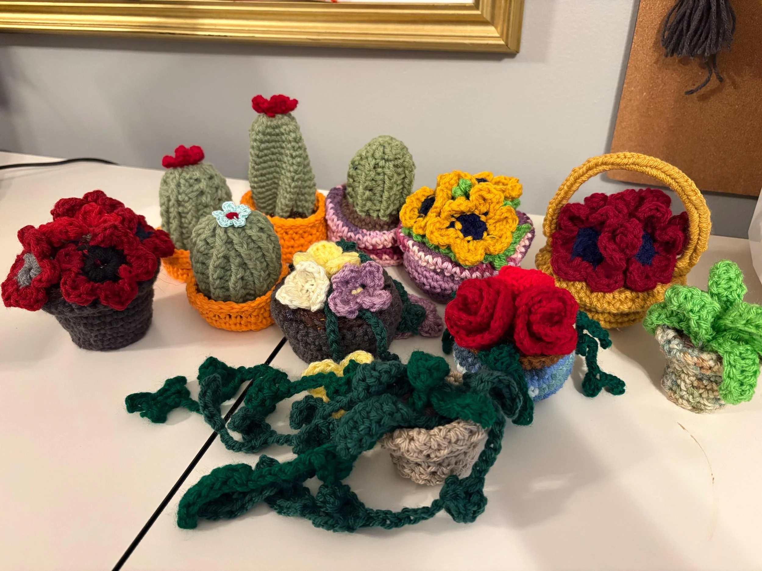 Add touch of fanciful color and joy to your home, work space, or even on long commutes! Each plant is made from project remnants (because we believe in using all of our viable materials here!) so that no two plants are ever identical. Whether you're sprucing up your space, or want to send a touch of joy and comfort to a dear friend, these little arrangements are certain to make everyone smile!