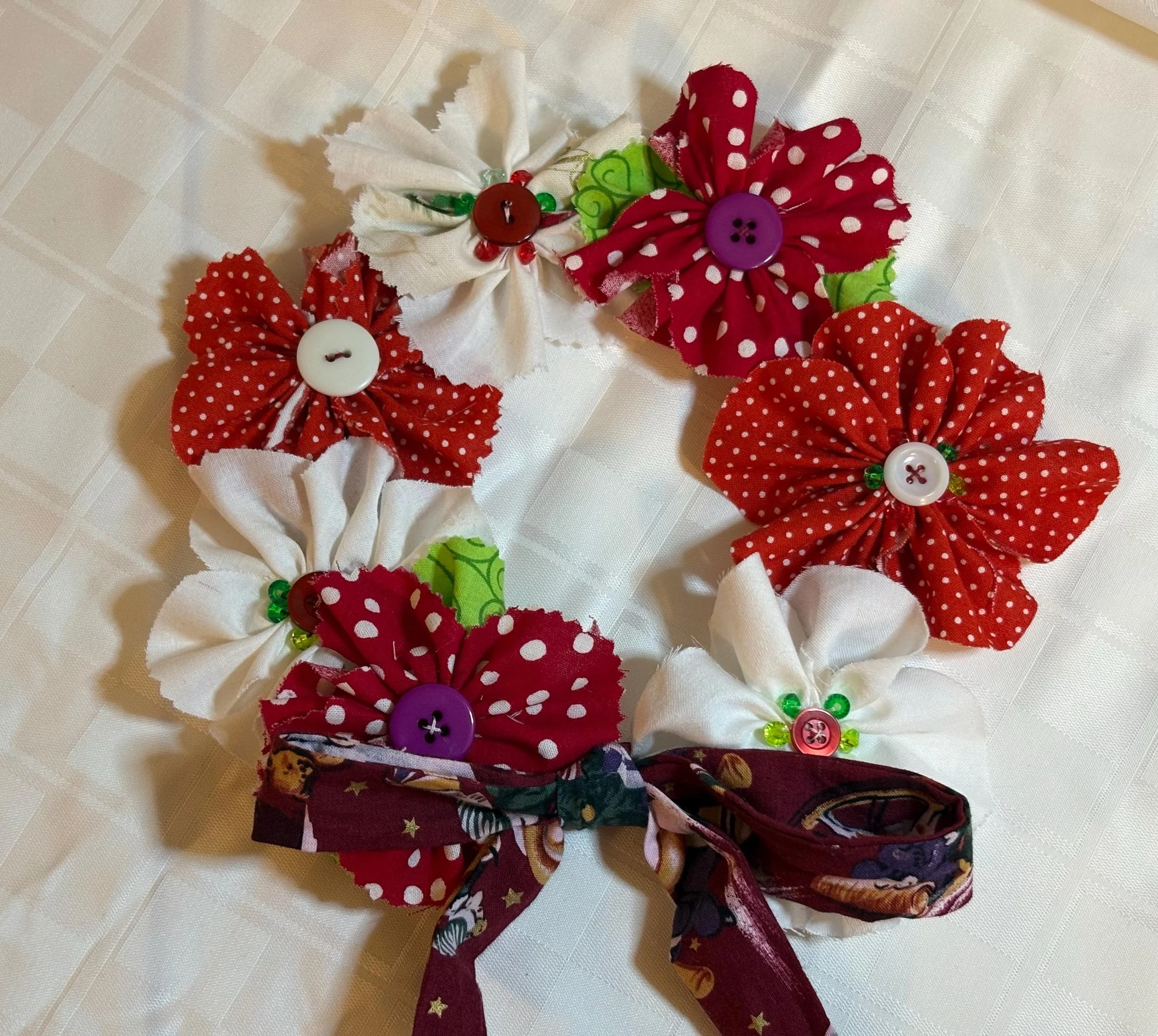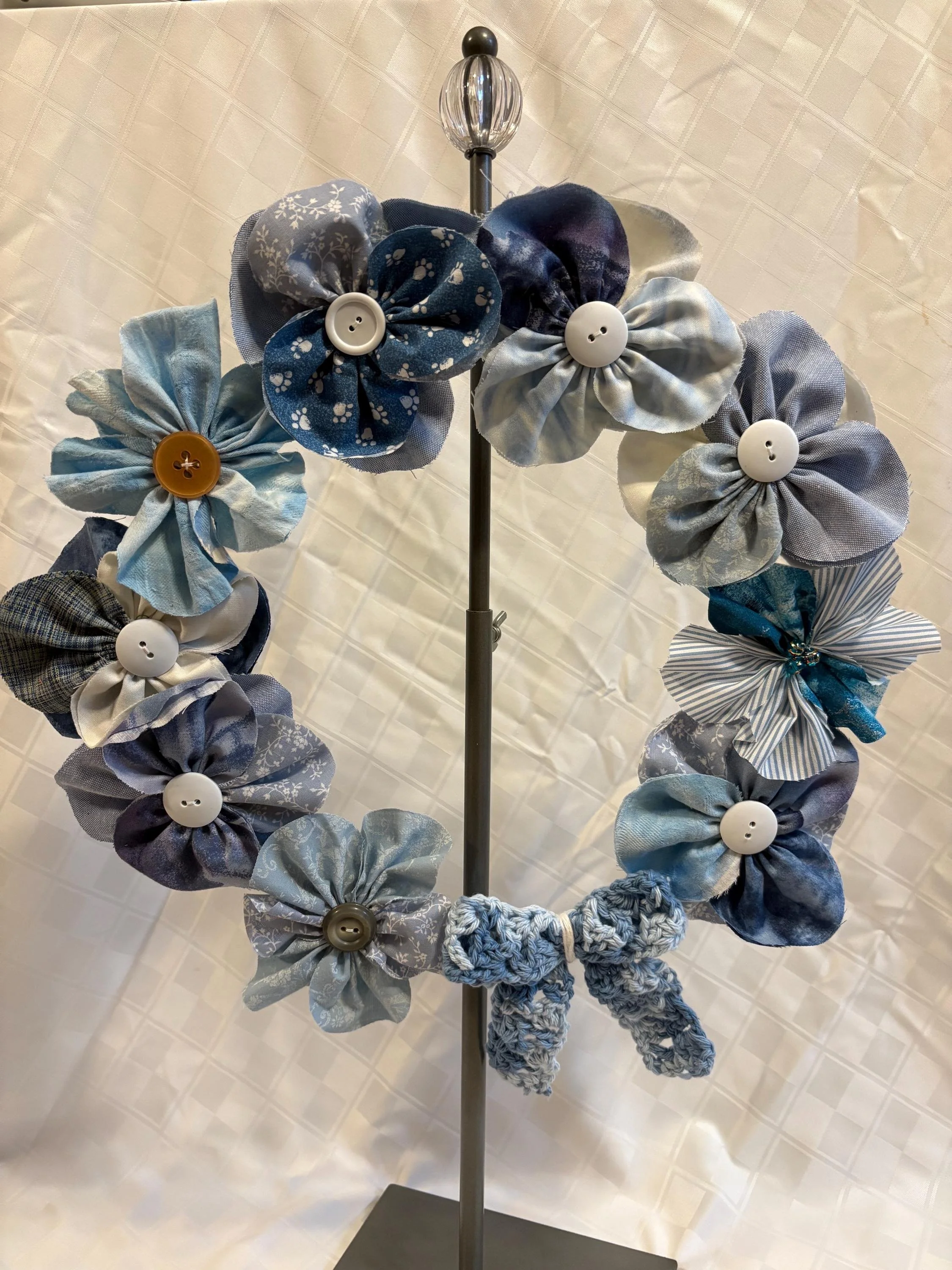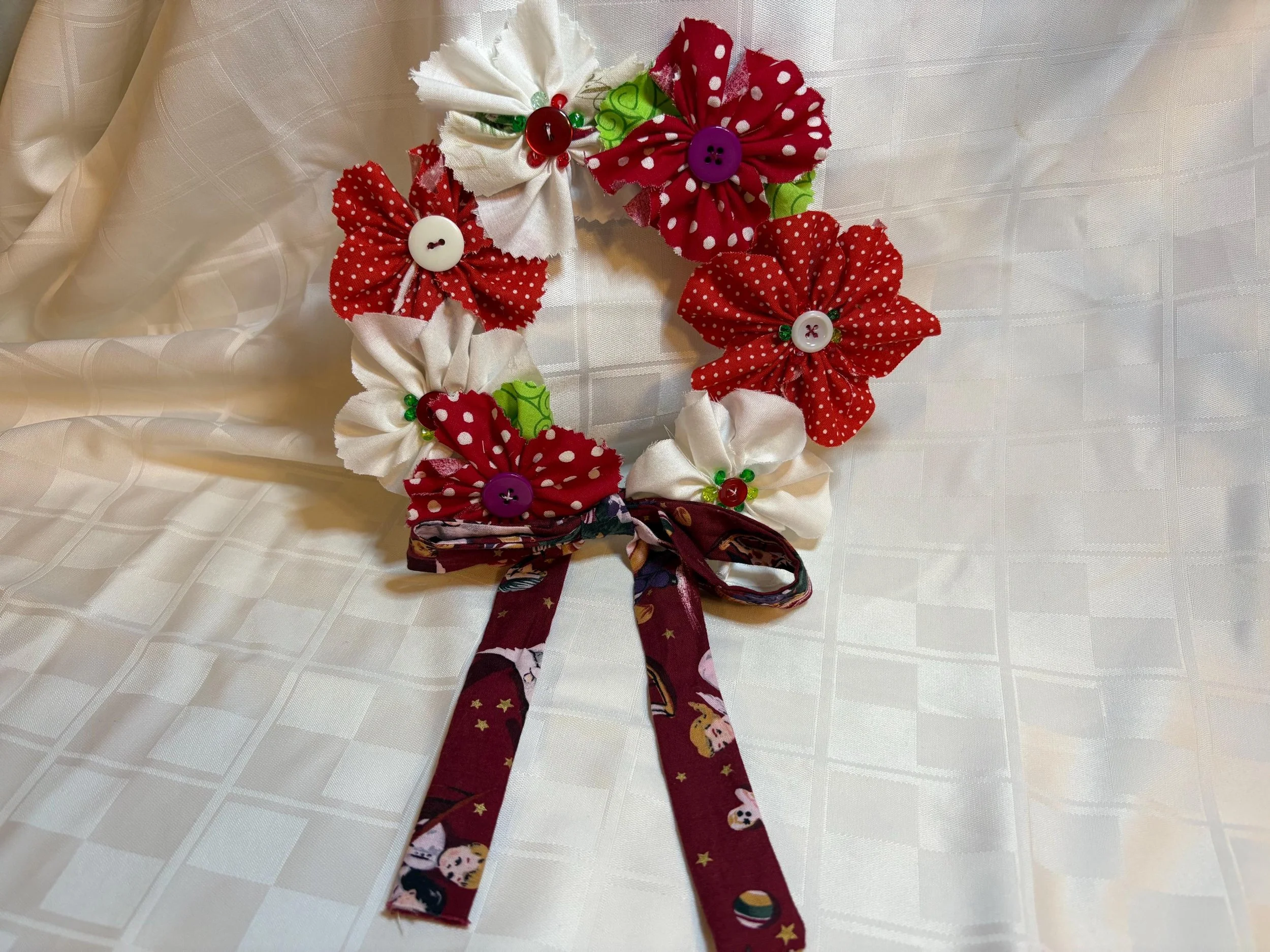 Add a splash of color, texture, and artist expression to your home or office! Each wreath is designed and created using various techniques, and according to its own special theme. I started making these wreaths as a way to try out a few new ideas and sewing patterns that had been on my radar for a while- and as something of a personal challenge for myself to try and make something more artistic, but focusing more attentively on theme.