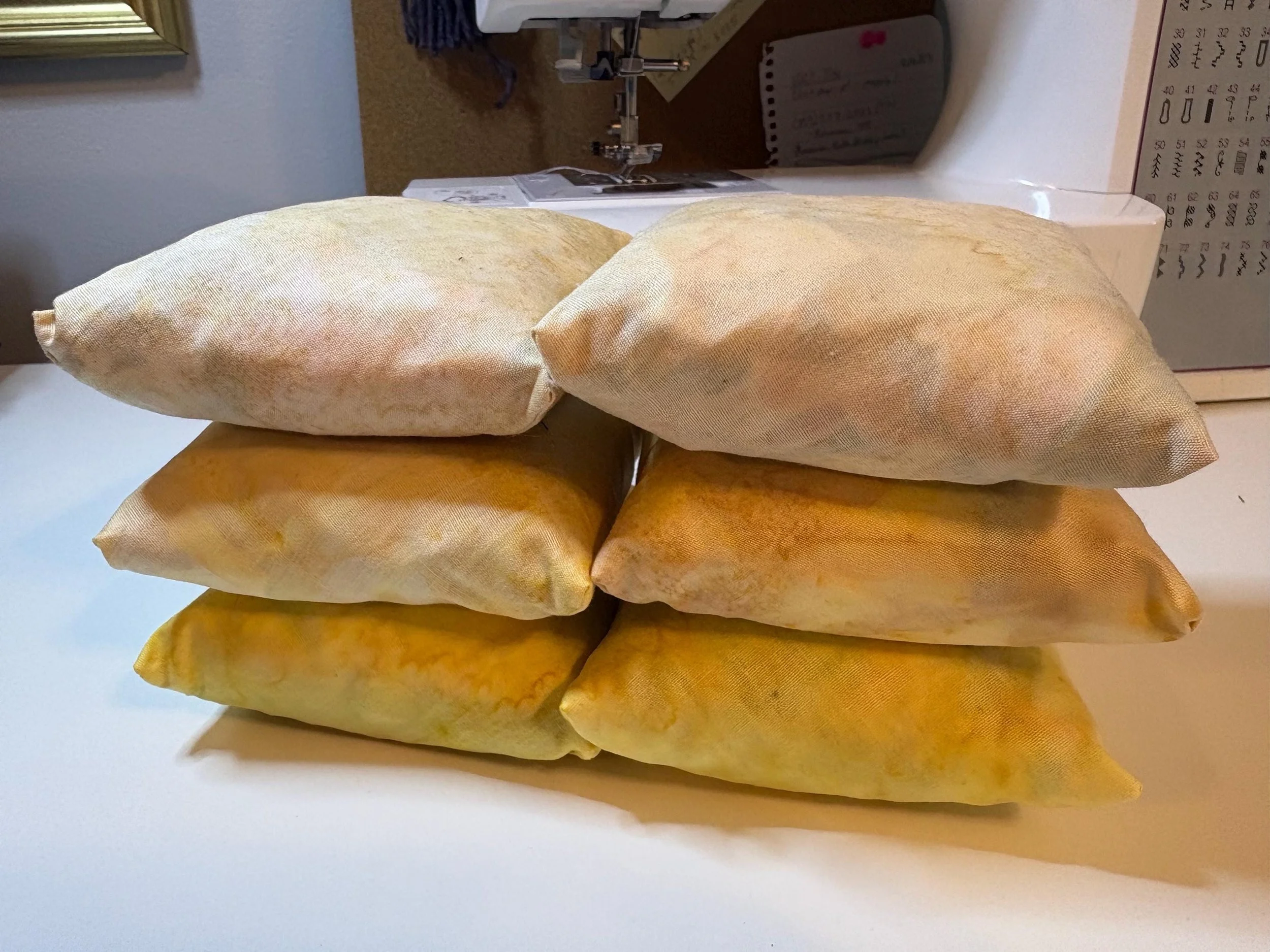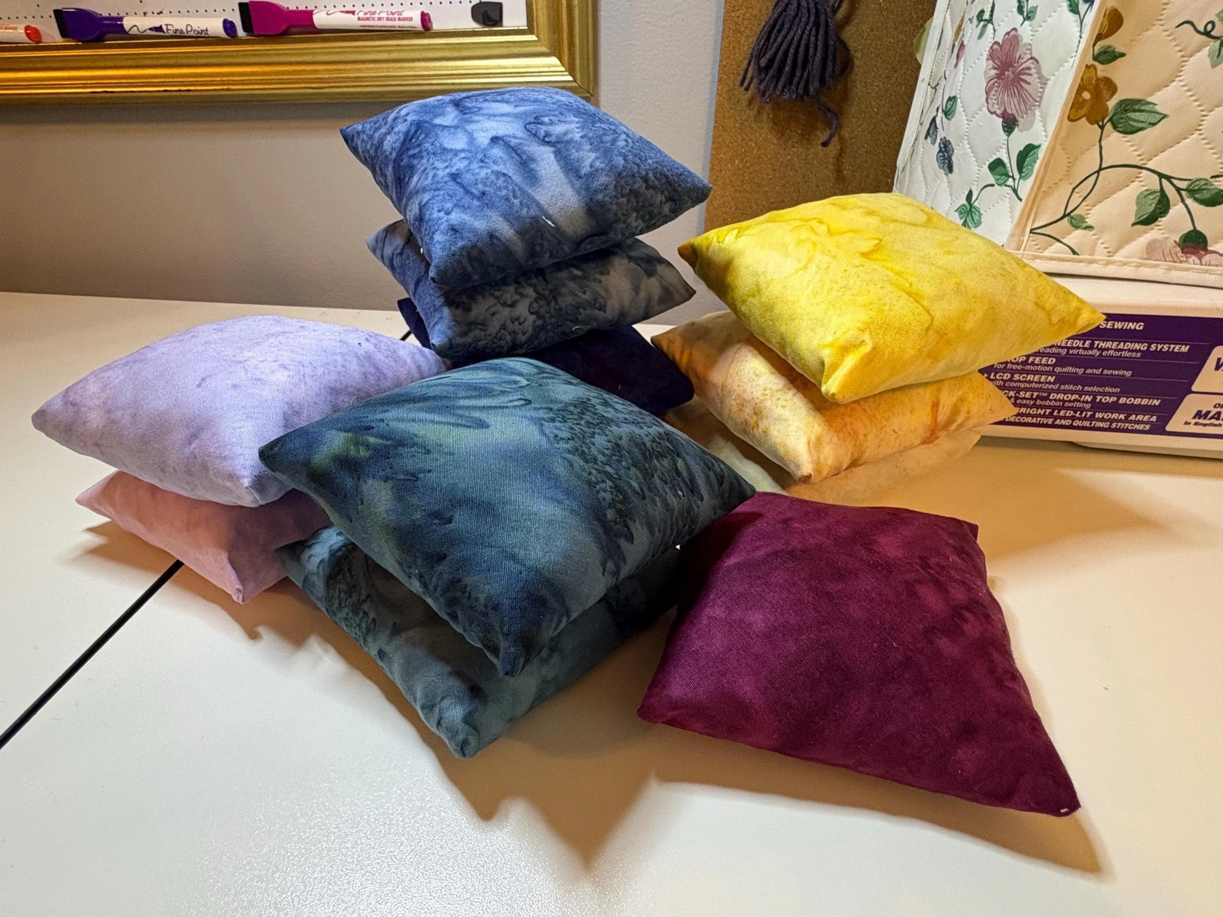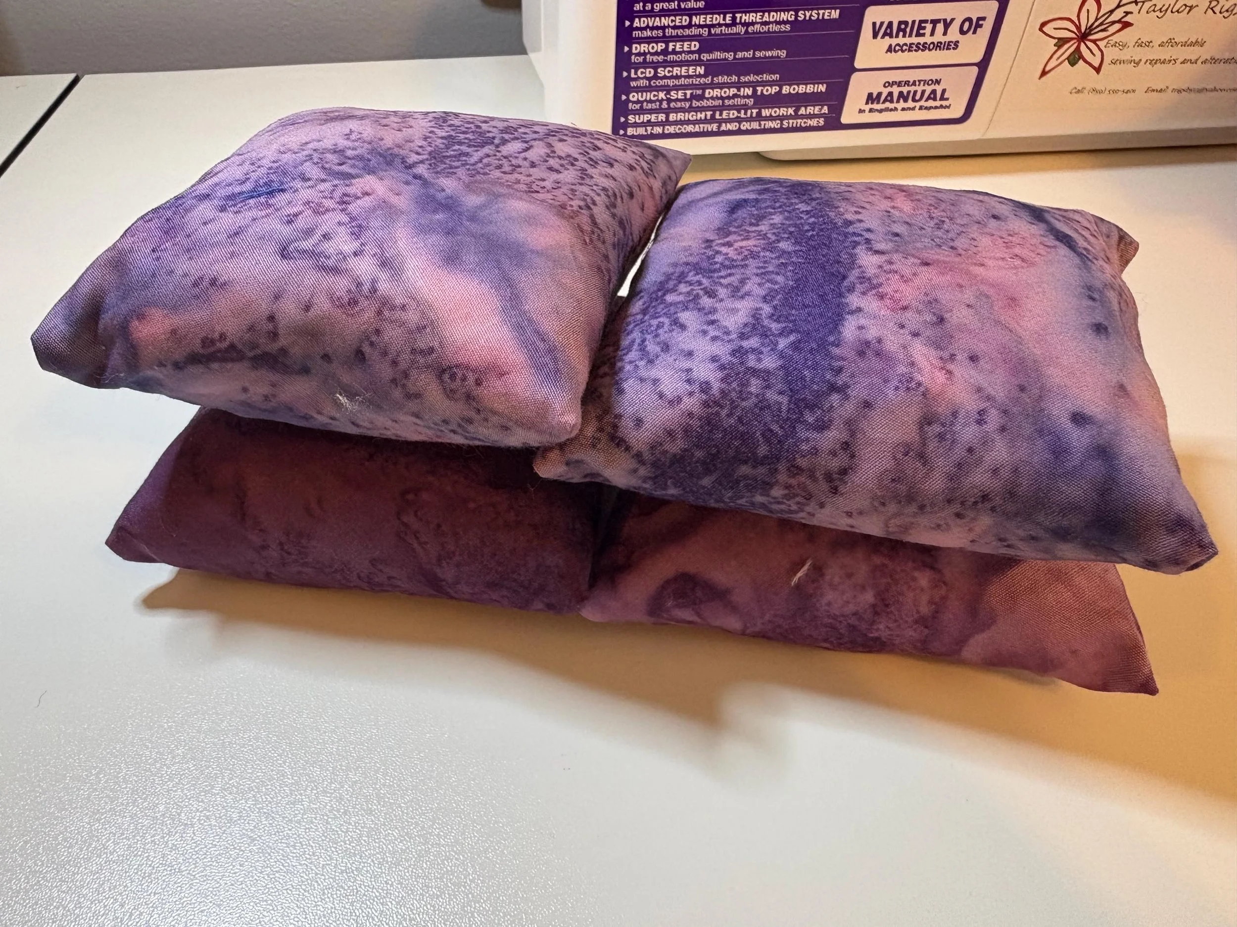 Add a splash of color to your space with a hand-made, 4x4 inch pin cushion! As someone with a lot of spare cotton, and a habit of misplacing pins and needles, I started making these cushions just for myself to keep those tools safer and more accessible. But they turned out so great, I just had to keep going! Each cushion is stuffed with mulched “cabbage” from my ongoing sewing/quilting projects, making them more sustainable and eco-friendly by cutting down on waste. The Rainbow Bundle includes 3 cushions selected at random, and comes with a mystery gift straight from the studio!