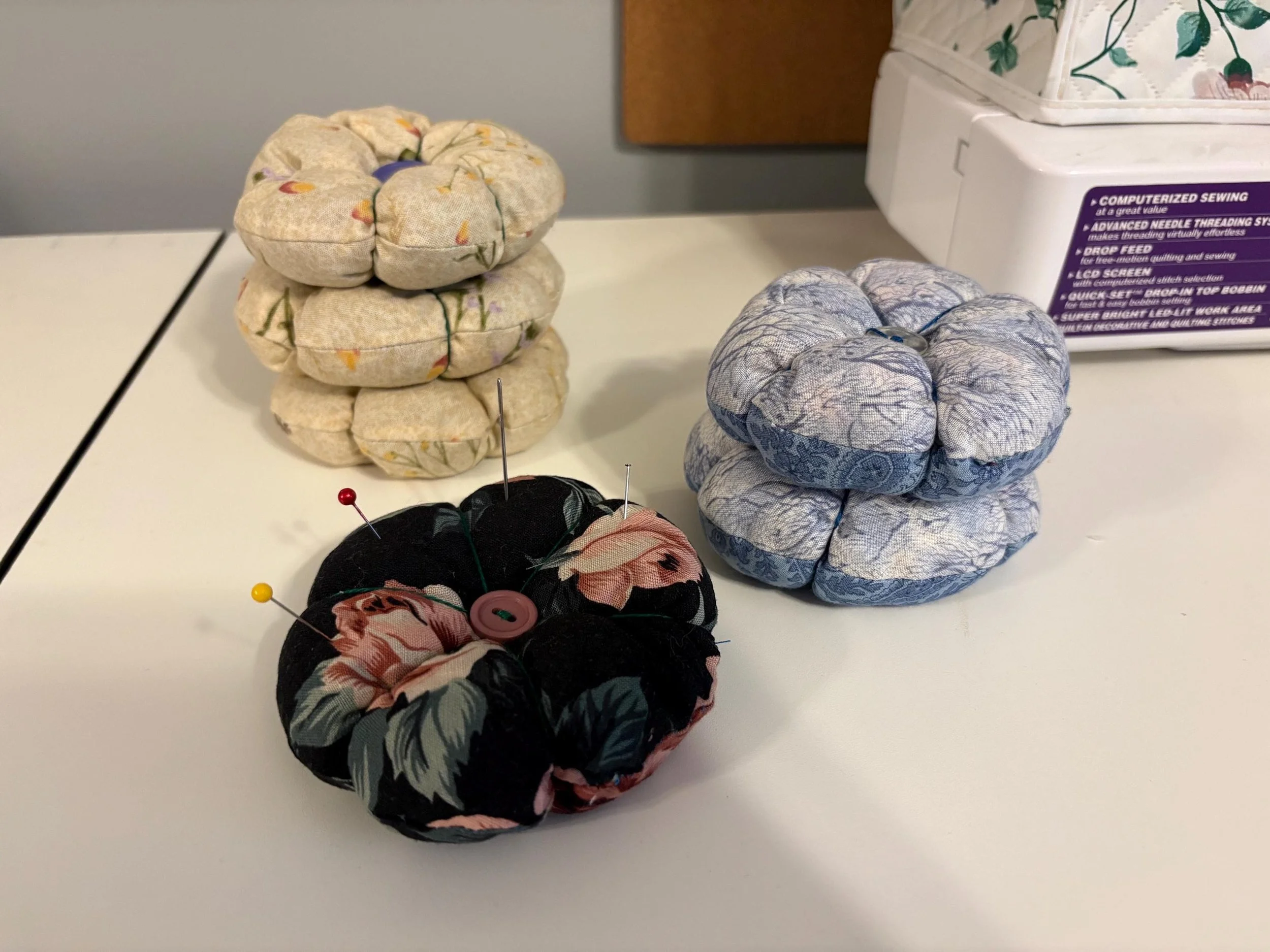 Now I'm introducing a few more variations - I've learned that there's no wrong way to make a pin cushion... and I'm having too much making them!